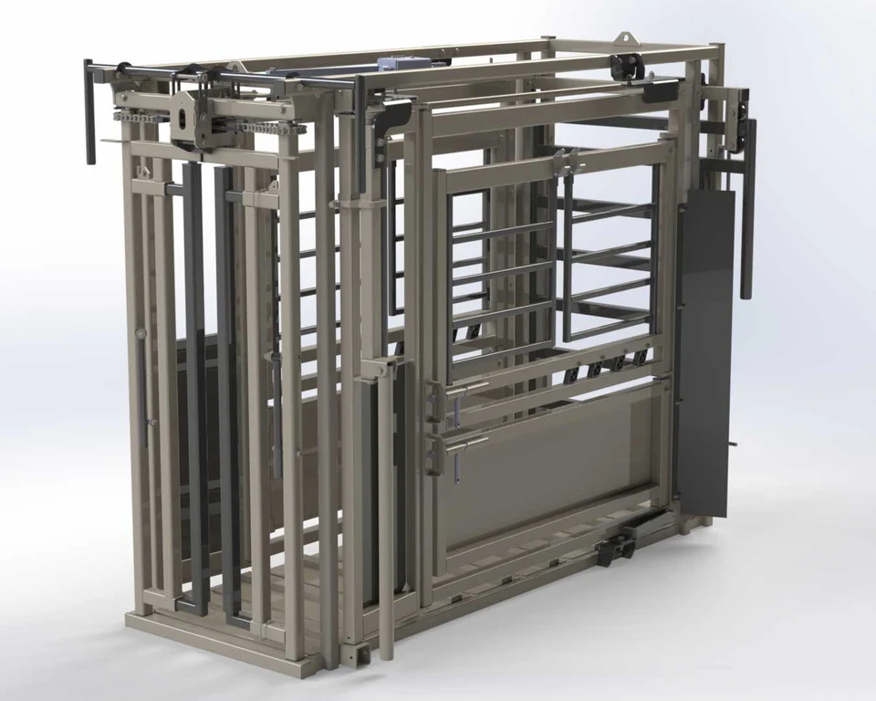 Add a palpation cage to your squeeze chute setup for safer and more controlled cattle handling. This add-on integrates with your system and is available when purchasing your chute.